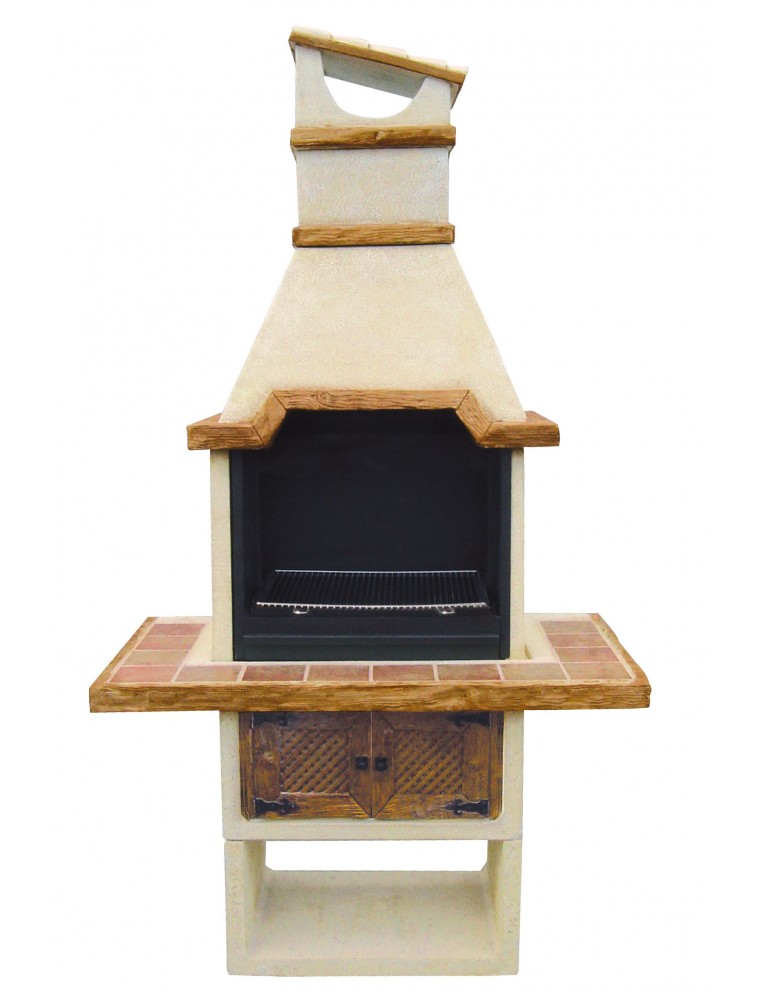 BARBACOA COMPLETA CON SU CAMPANA, HOGAR Y PUERTAS METÁLICOS, PARRILLA. CAMPANA, HOGAR Y PUERTAS DE RESINA APARIENCIA MADERA.