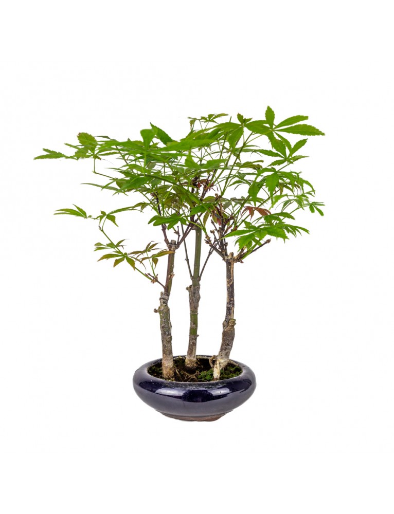 Bonsái tipo Bosque Acer palmatum atropurpureum de 8 años. Son árboles que por sus características deben situarse en el exterior, ideales para balcones, jardines y terrazas. Árbol de hoja caduca, muy apreciado por la coloración de sus hojas.