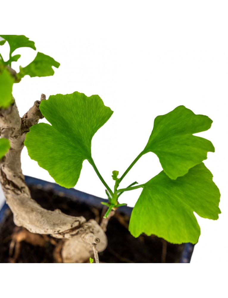 Ginkgo biloba. Bonsái 9 años. Árbol de los cuarenta escudos. Son árboles que por sus características deben situarse en el exterior, ideales para balcones, jardines y terrazas. Árbol de hoja caduca. Hojas con forma de abanico, y es muy apreciado por su coloración otoñal amarillo-oro.