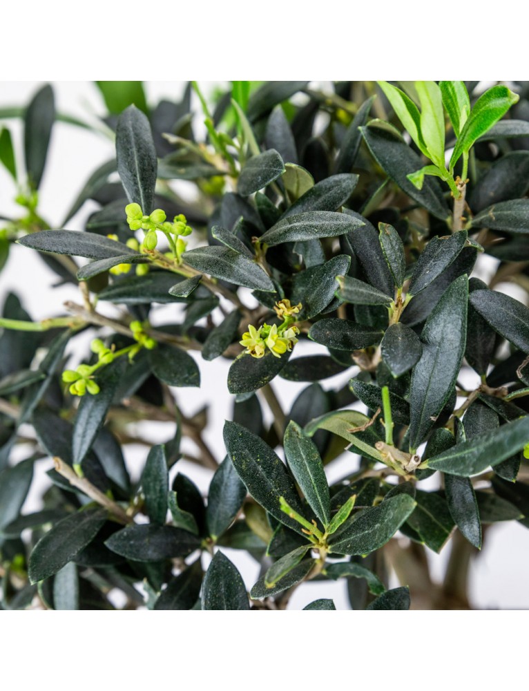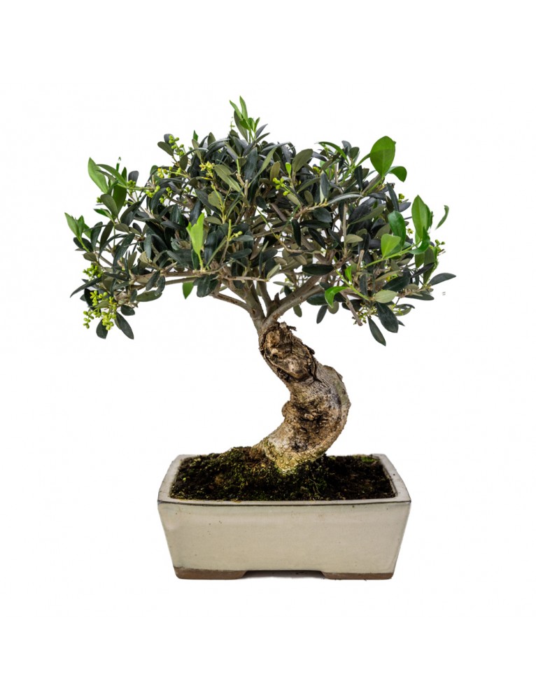 Olea europaea, Bonsái 10 años. Olivo. Son árboles típicamente mediterráneos. Viven mejor en el exterior, ya que necesitan del sol y el frío para producir frutos. Árbol de hoja perenne, de crecimiento lento pero constante. De sus frutos, las aceitunas, se extrae el apreciado aceite de oliva.