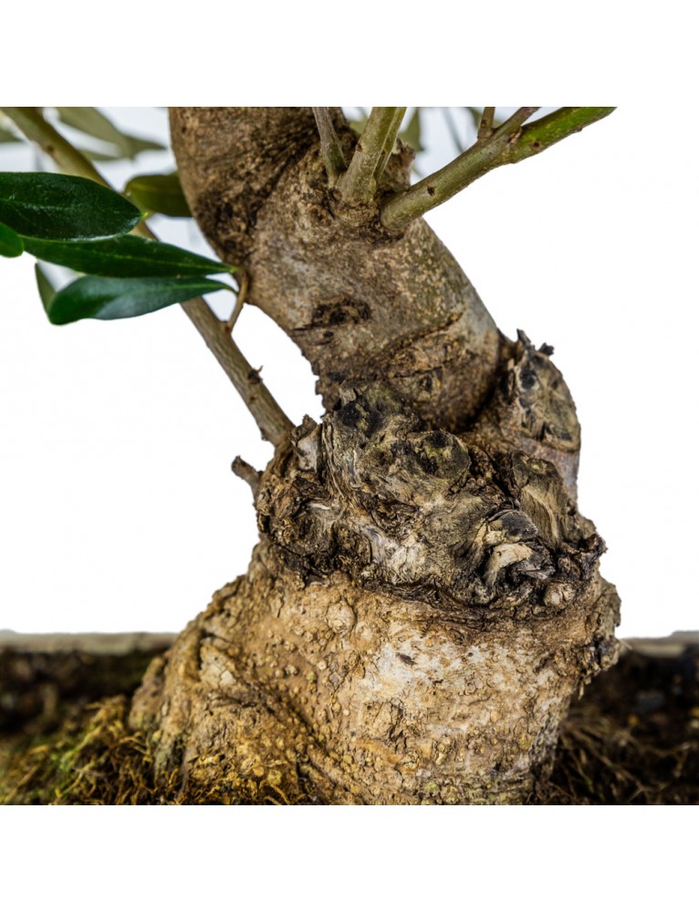 Olea europaea, Bonsái 16 años. Olivo. Son árboles típicamente mediterráneos. Viven mejor en el exterior, ya que necesitan del sol y el frío para producir frutos. Árbol de hoja perenne, de crecimiento lento pero constante. De sus frutos, las aceitunas, se extrae el apreciado aceite de oliva.