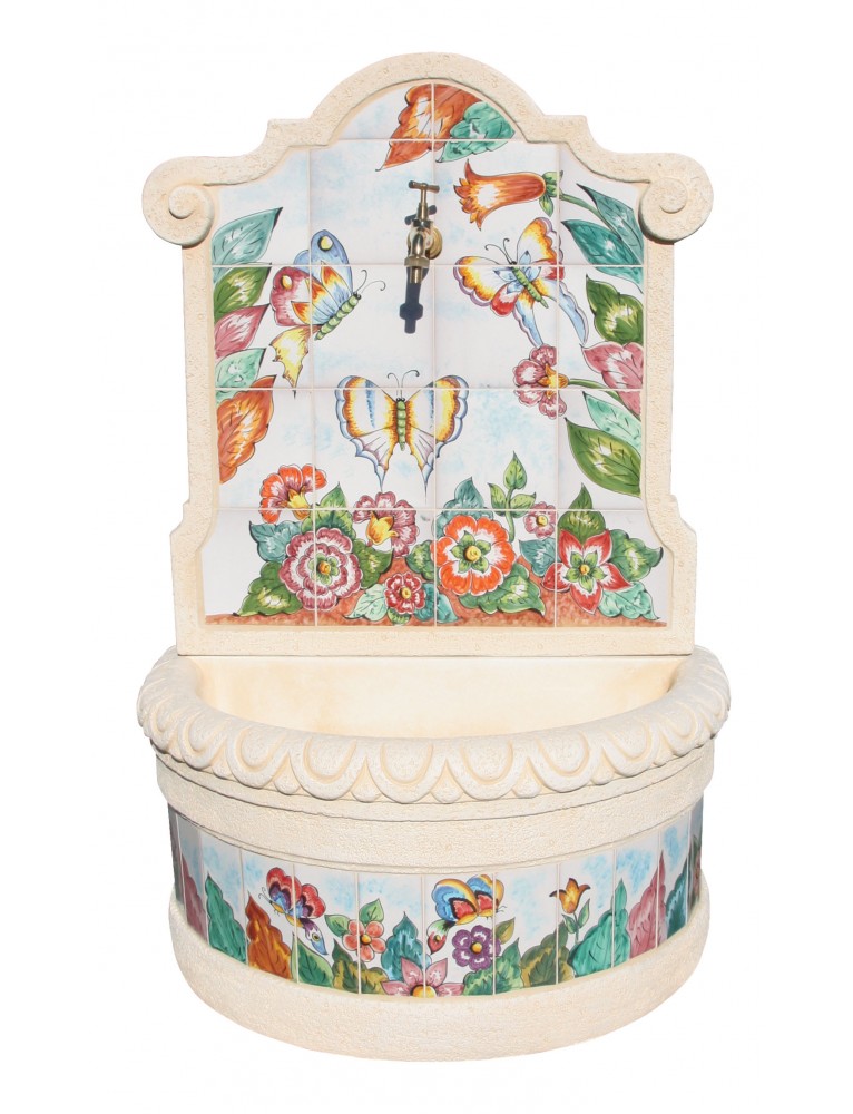 FUENTE MURAL, AZULEJO ORIGINAL PINTADO A MANO + GRIFO