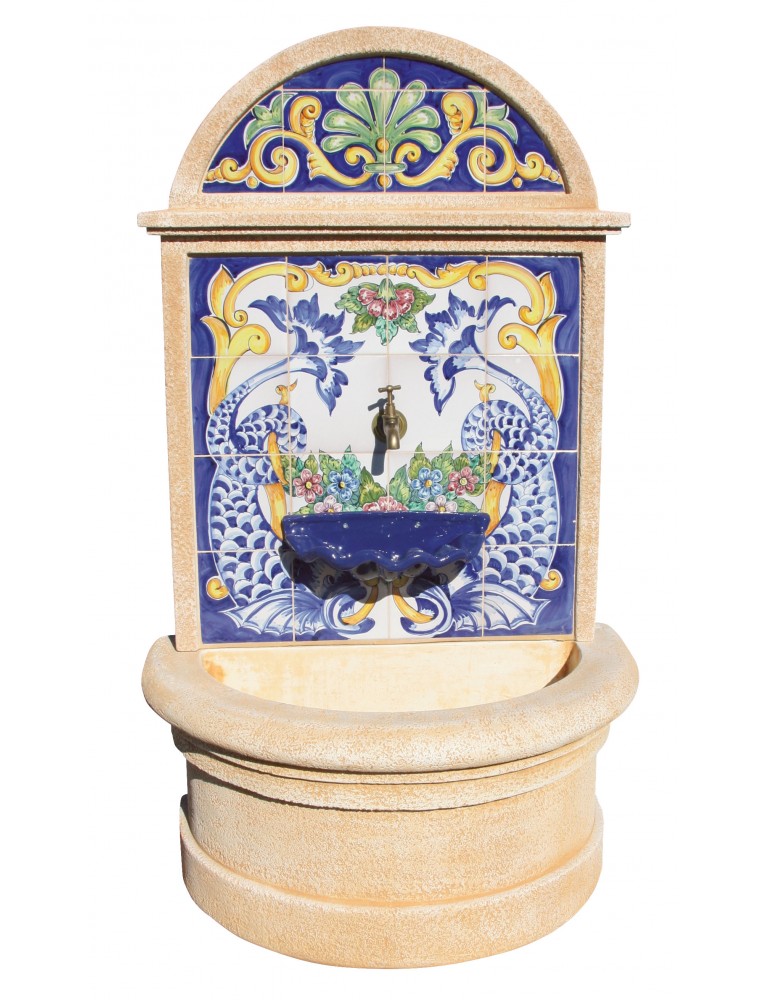 FUENTE MURAL, AZULEJO ORIGINAL PINTADO A MANO + GRIFO