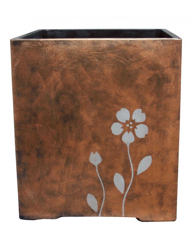 MACETERO CUADRADO, HORMIGÓN, 2 TIPOS DE DECORACIÓN FLORAL (DALIA/LOTUS), 3 COLORES DE FONDO DIFERENTES, 3 TALLAS