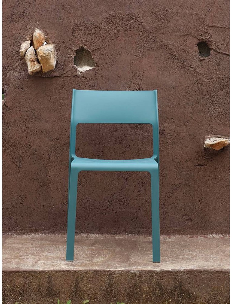 Silla monobloco sin brazos. Polipropileno fiberglass tratado anti-UV y teñido en masa. Efecto mate. Con tapones antideslizantes. Resina reciclable.